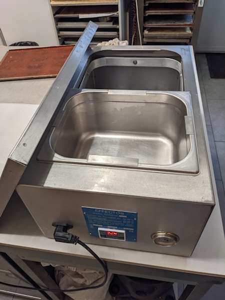 Beschrieb Temperierapparat EFFEKTOR inkl. 2 CNS Gastronorm Behälter zu je 9l Inhalt, umgebaut auf digitale Temperatursteuerung, auf 0.1°C genau, bekannt für sehr zuverlässige und robuste Qualität. Kann per Post verschickt werden Versandkosten CHF 30